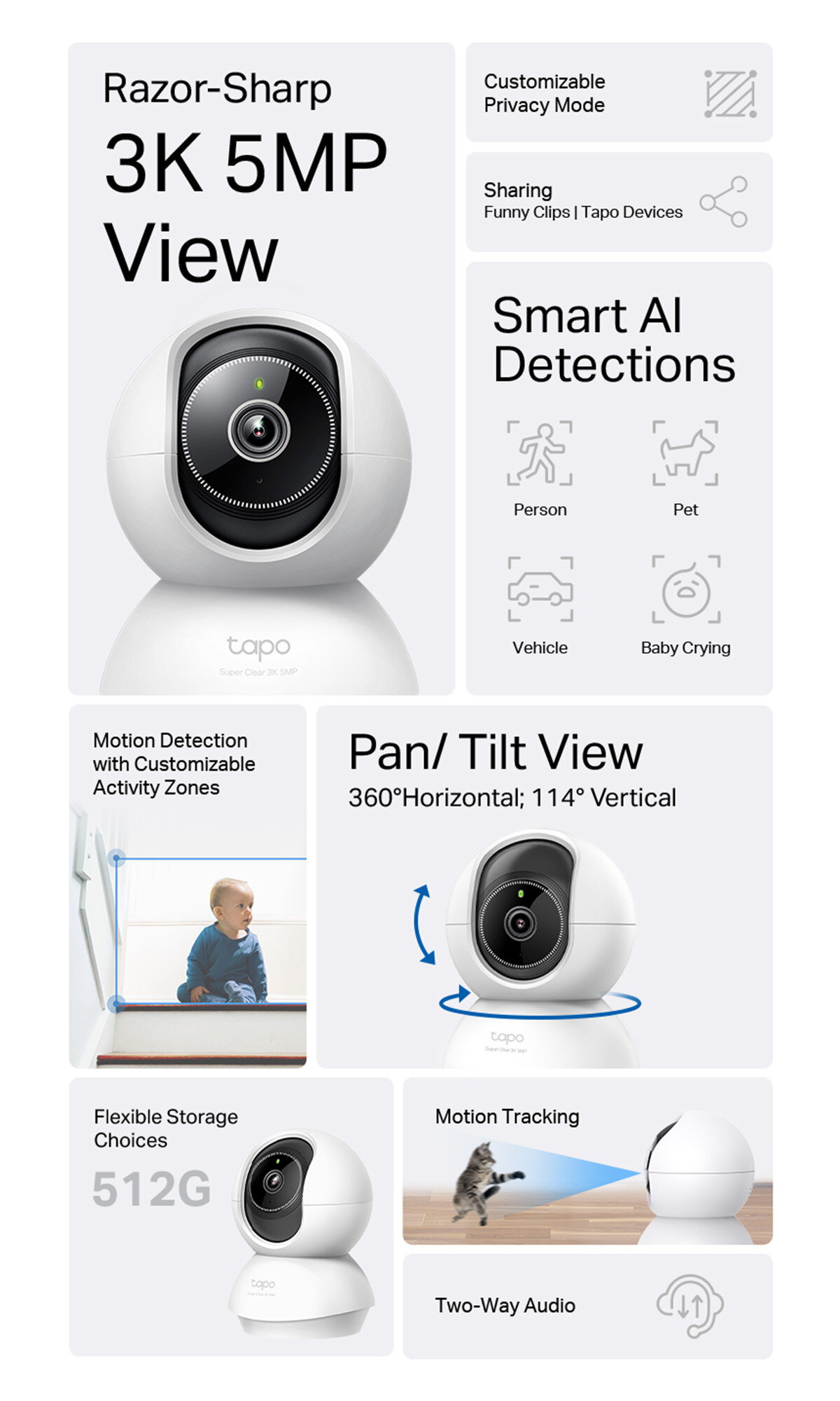 TP-Link Tapo C230 3K 5MP Pan/Tilt AI CCTV WIFI Wireless IP Camera with Smart AI Detection & Notifications