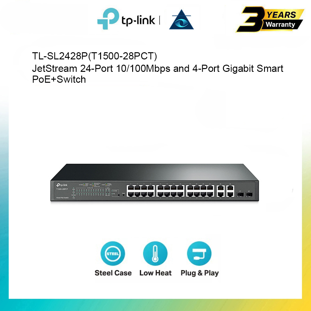 #tp-link #tl-sl2428p(t1500-28pct) #jetstream #24-port #10/100mbps #and #4-Port #gigabit #smart #poe+ #switch