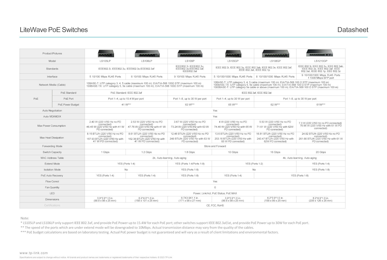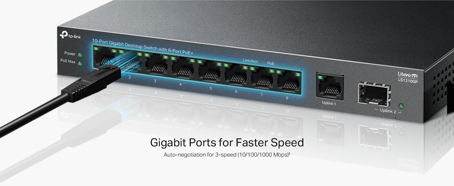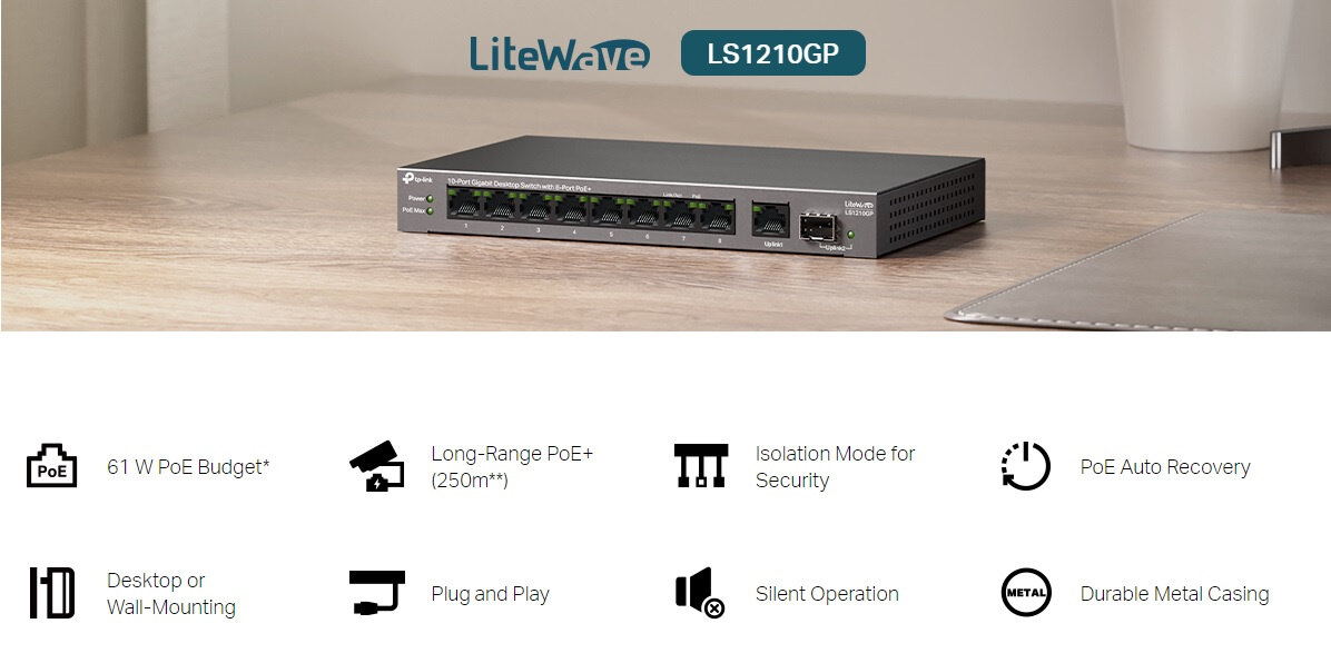 TP-Link LS1210GP 10 Port 61W with 8 Port PoE LiteWave Gigabit Desktop Steel Housing Switch